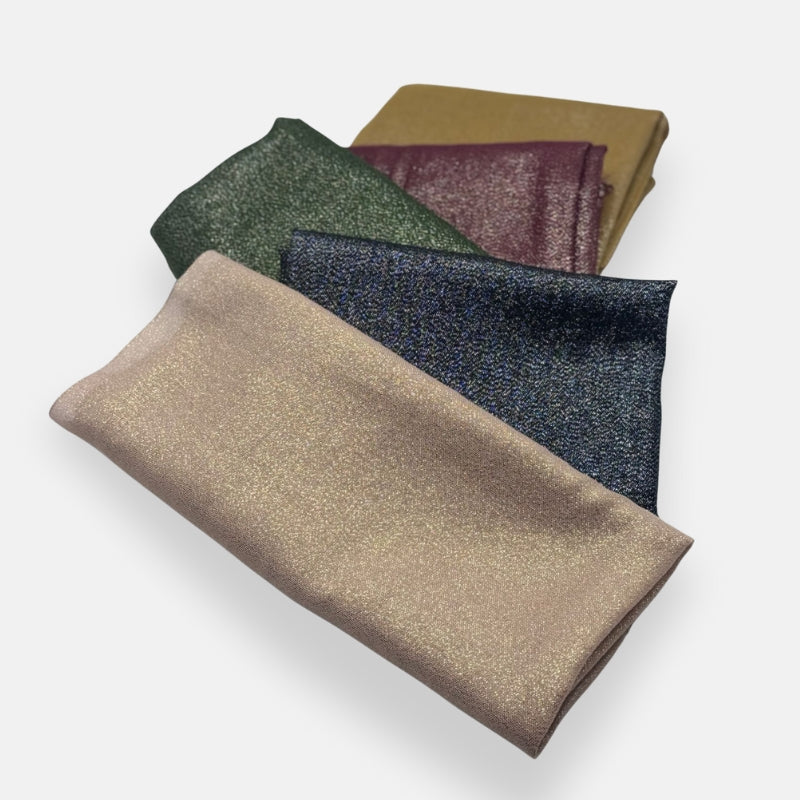 A beautifully textured headscarf with a soft metallic finish. Lightweight, flexible, and dressy.
