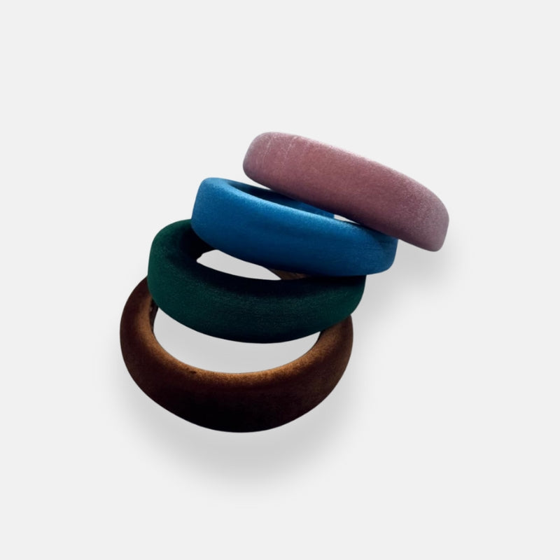 This padded headband is made from soft, smooth velvet for a rich, polished look. The cushioned design adds subtle volume while staying comfortable.